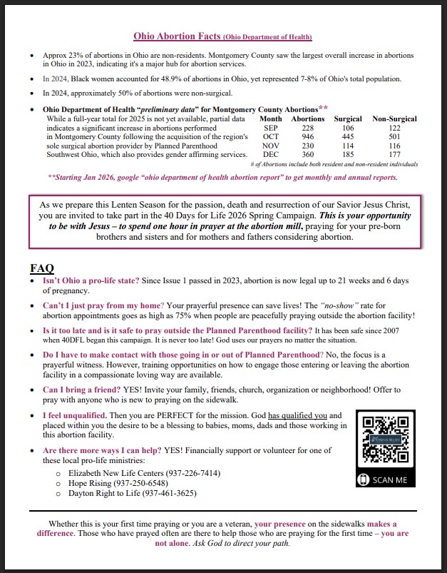 Dayton 40 Days for Life Spring Campaign Kick Off Rally 2026